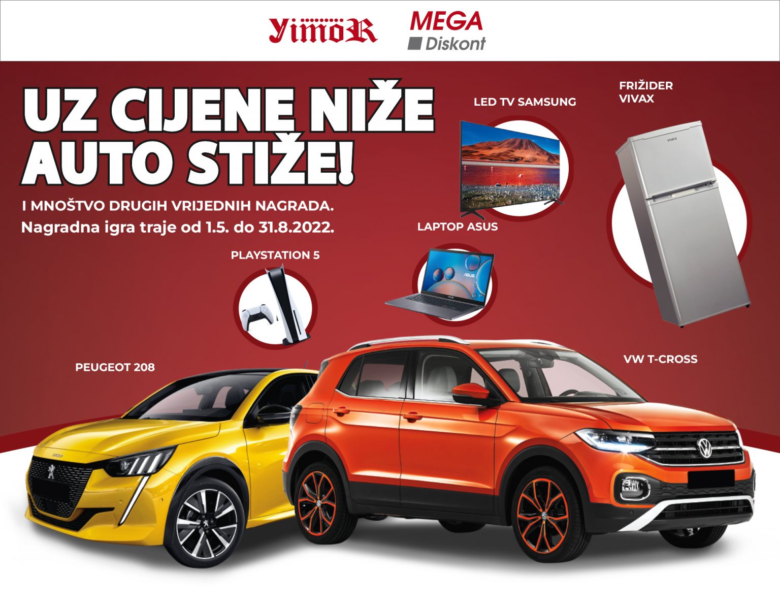 Počela je velika nagradna igra ”UZ CIJENE NIŽE AUTO STIŽE!” u vašim YimoR i MEGA Diskont trgovinama.