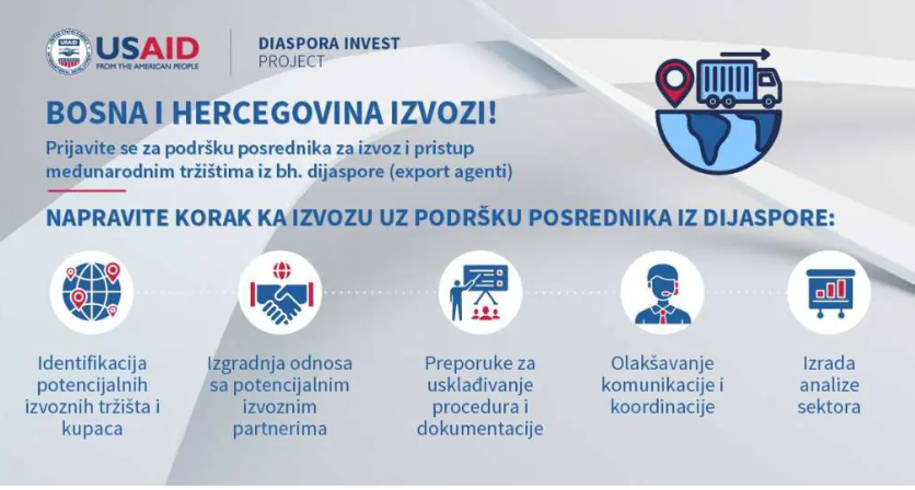 USAID projekt “Diaspora Invest” je raspisao poziv prema domaćim kompanijama koje su zainteresovane za podršku u povezivanju i ostvarivanju pristupa međunarodnim tržištima.