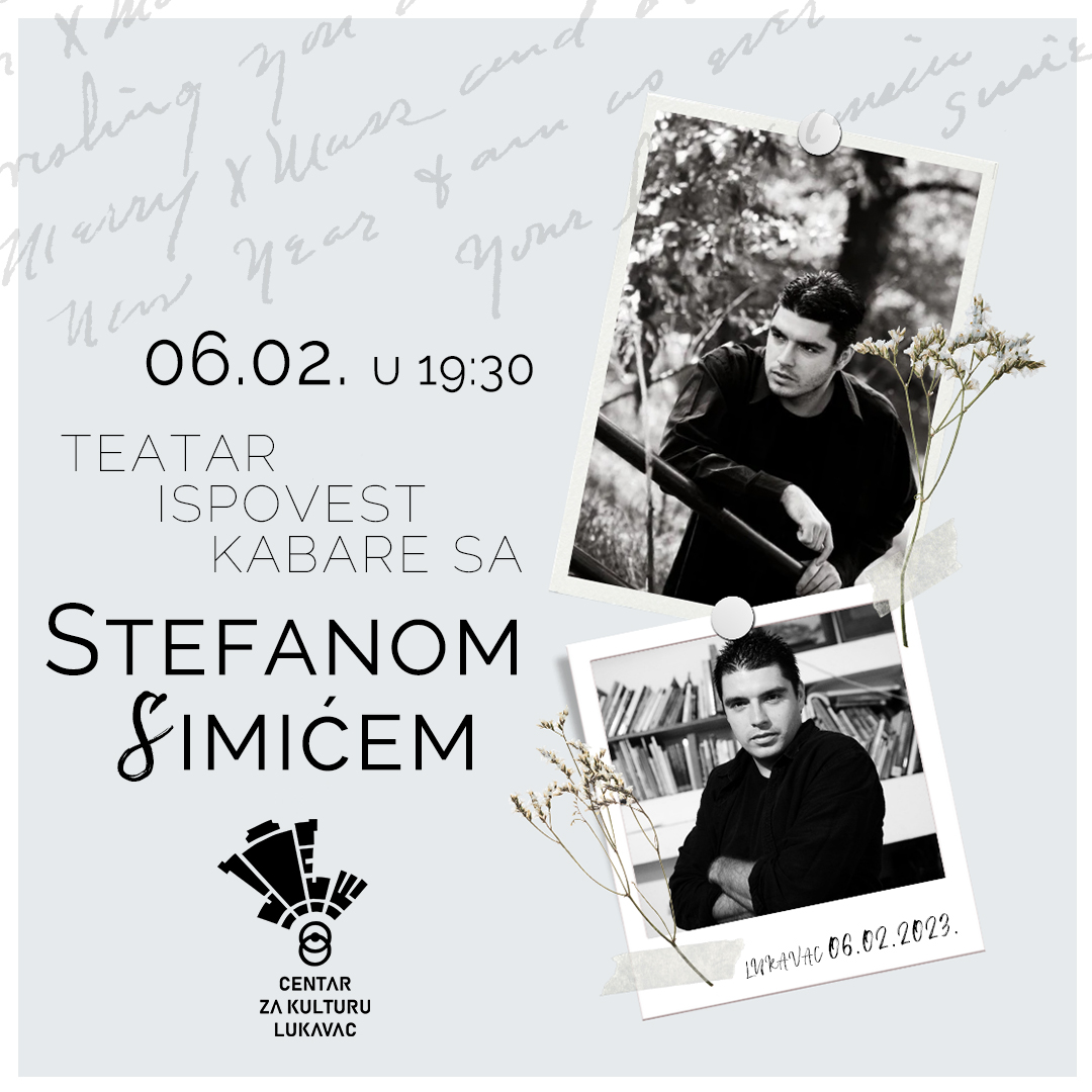Druženje sa umjetnikom, pjesnikom i sociologom Stefanom Simićem u Centru za kulturu Lukavac prerasta u tradiciju. Nakon prošlogodišnjeg gostovanja koje je izazvalo veliki interes publike, Stefan Simić u februaru, nakon gostovanja u Beogradu, Tesliću, Šamcu, Derventi, Brodu i Tuzli, stiže u Lukavac.