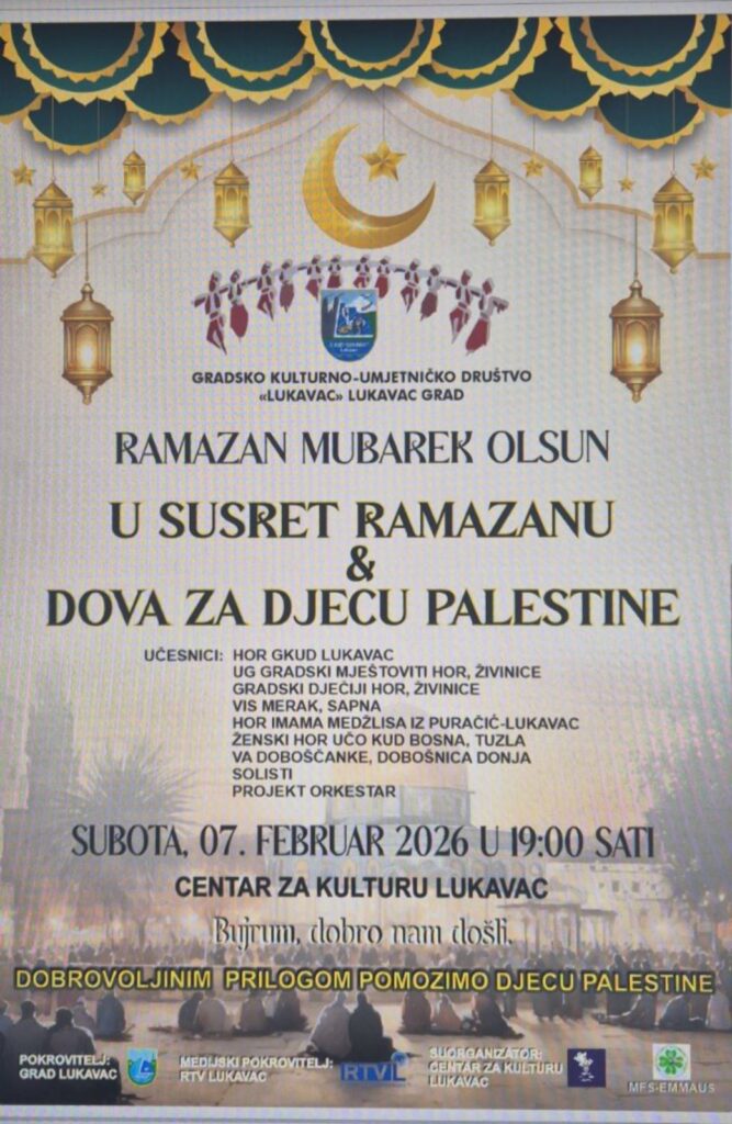 Također, hor imama Medžlisa Islamske zajednice Puračić bit će jedan od učesnika koncerta „U susret ramazanu i Dova za djecu Palestine“, kojim se, kroz ilahije i dove, šalje poruka solidarnosti, zajedništva i podrške djeci Palestine.