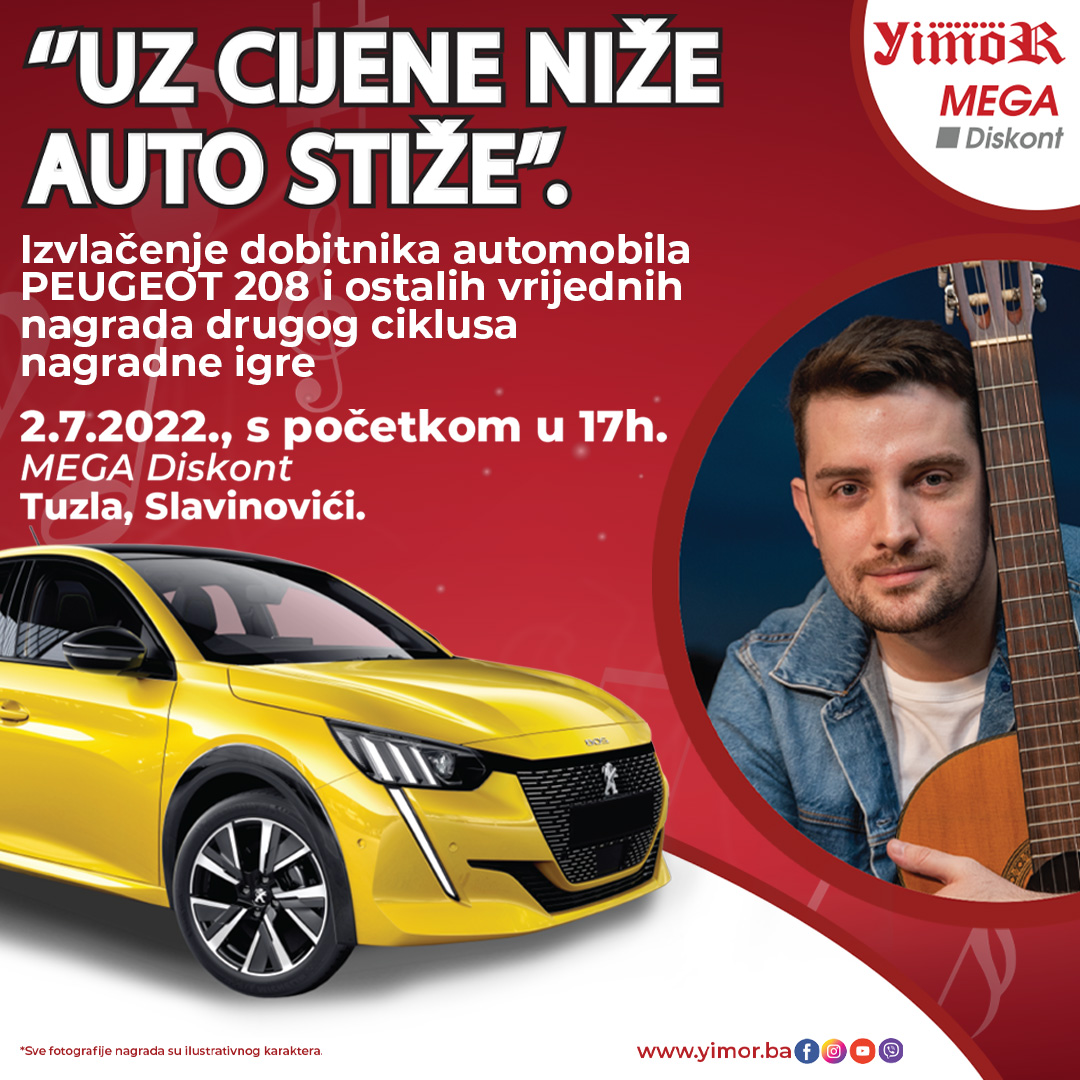 Bliži nam se izvlačenje dobitnika 2. kruga nagradne igre “UZ CIJENE NIŽE AUTO STIŽE!”, gdje ćemo izvući i prvog dobitnika jedne od glavnih nagrada, PEUGEOT 208.
